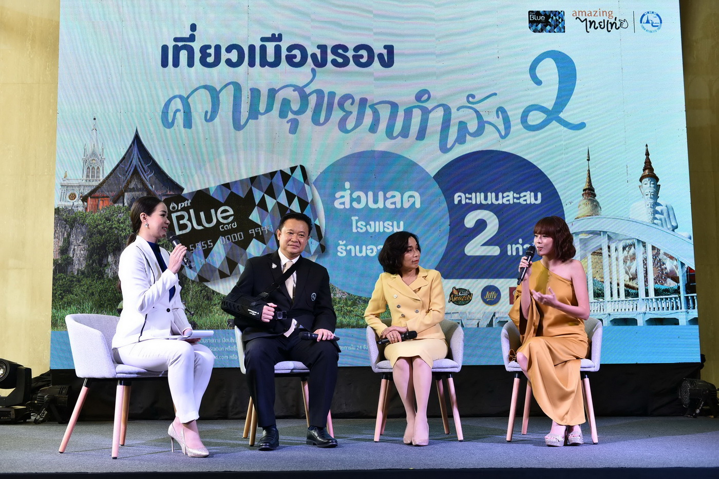 นางสาวจิราพร ขาวสวัสดิ์ ประธานเจ้าหน้าที่บริหารและกรรมการผู้จัดการใหญ่ บริษัท ปตท.น้ำมันและการค้าปลีกจำกัด (มหาชน) หรือ พีทีที โออาร์ กล่าวว่า แคมเปญ “เที่ยวเมืองรองความสุขยกกำลัง 2 กับ พีทีที บลูการ์ด” ถือเป็นแคมเปญที่ พีทีที โออาร์ มีความภูมิใจที่ได้ร่วมเป็นส่วนหนึ่งในการส่งเสริมการท่องเที่ยวและเศรษฐกิจในพื้นที่นำร่องในเมืองรอง 24 จังหวัด ได้แก่ เชียงราย เพชรบูรณ์ แม่ฮ่องสอน แพร่ สุโขทัย ลำปาง น่าน สมุทรสงคราม ราชบุรี ลพบุรี สุพรรณบุรี อุบลราชธานี อุดรธานี นครพนม เลย บุรีรัมย์ นครศรีธรรมราช ตรัง ชุมพร ระนอง สตูล ตราด จันทบุรี และนครนายก ให้ดียิ่งขึ้น ผ่านบัตร พีทีที บลูการ์ด ของ พีทีที โออาร์ ซึ่งปัจจุบันมีจำนวนสมาชิกมากกว่า 4.5 ล้านราย ด้วยปัจจุบันการเดินทางท่องเที่ยวเมืองรองได้รับความสนใจจากนักท่องเที่ยวมากขึ้นดังจะเห็นได้จากจำนวนนักท่องเที่ยวในเมืองรองที่เพิ่มสูงขึ้นอย่างต่อเนื่อง ซึ่งแต่ละจังหวัดจะมีความหลากหลายทั้งทางธรรมชาติ เอกลักษณ์วิถีชุมชนท้องถิ่น รวมถึงประเพณี ศิลปวัฒนธรรม ที่เป็นภูมิปัญญาท้องถิ่น อันควรค่าแก่การรักษา และศึกษาค้นคว้า โดยสิทธิพิเศษที่สมาชิกบัตร พีทีที บลูการ์ด จะได้รับเมื่อใช้จ่ายเติมน้ำมันที่สถานีบริการน้ำมัน พีทีที สเตชั่น (PTT Station) หรือซื้อสินค้าที่ร้านคาเฟ่ อเมซอน ร้านสะดวกซื้อจิฟฟี่ฮั่วเซ่งฮงติ่มซำ และศูนย์บริการการยานยนต์ ฟิต ออโต้ กว่า 1,000 สาขา ที่เข้าร่วมโครงการ ใน 24 จังหวัดเมืองรอง ระหว่างวันที่ 1 กรกฎาคม 2562 – 25 สิงหาคม 2562 ซึ่งทุกยอดใช้จ่ายจะได้รับคะแนนสะสมพิเศษถึง 2 เท่า นอกจากนี้ ยังได้จัดหาร้านค้าและโรงแรมกว่า 500 แห่งใน 24 จังหวัดเมืองรอง เพื่อให้สิทธิพิเศษกับ สมาชิก พีทีที บลูการ์ด อีกด้วย โดยสมาชิกสามารถกดรับสิทธิ์ได้ผ่าน พีทีที บลูการ์ด โมบาย แอปพลิเคชัน (PTT Blue Card Mobile Application) ตั้งแต่วันที่ 1 กรกฎาคม 2562 เป็นต้นไป ซึ่งถือเป็นอีกหนึ่งเซอร์ไพรส์พิเศษที่ทาง พีทีที โออาร์ จัดเพื่อสมาชิกบัตร พีทีที บลูการ์ด ทุกท่าน