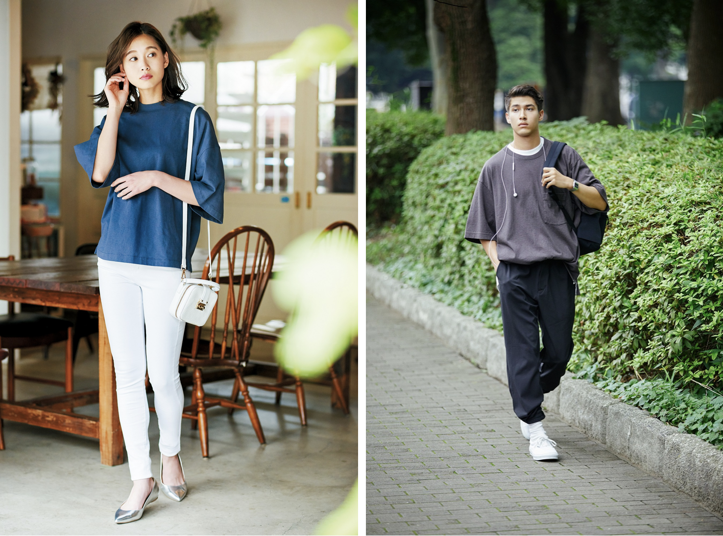 เทรนด์ถัดมาที่คุณฌอนได้หยิบยกขึ้นมาพูดถึง คือ “Effortless Chic” ซึ่งเป็นเทรนด์สำหรับเหล่าแฟชั่นนิสต้าสาย มินิมอล ที่เรียกได้ว่าเป็นเทรนด์สุดฮิตของเหล่า Influencer ทั่วโลก “จุดเด่นของเทรนด์นี้ คือ ความคลีนของทรง และความง่ายแต่เก๋ในการแต่งตัว โดยไอเท็มที่อยากจะแนะนำในการแมทช์ลุคนี้ คือกางเกงเอวสูงทรงโค้ง (Curve Pants) หรือเอวสูงขากว้าง (Wide Leg) ที่จะเน้นสัดส่วนบริเวณเอว และสะโพกของผู้หญิง ช่วยอำพรางหุ่นของสาวๆ ให้ดูสูงและหุ่นดียิ่งขึ้น ซึ่งถ้าเราเลือกแมทช์เนื้อผ้าที่ต่างกัน อย่างเช่นผ้ายีนส์ ผ้าลูกฟูก (Corduroy) หรือผ้าเจอร์ซี่ ก็จะยิ่งทำให้แต่งออกมาได้หลากหลายลุคมากขึ้น” ทางฝั่งหนุ่ม ๆ คุณฌอนได้ให้ทริคการมิกซ์แอนด์แมทช์เพิ่มเติมอีกว่า “การเลือกไอเท็มคลาสสิคอย่างพวกกางเกงผ้าชิโนทรงตรง (Vintage Regular Fit Chino) หรือกางเกงขาห้าส่วน (Ankle Pants) โดยเฉพาะแบบผ้าลูกฟูกที่มีเนื้อผ้าหนาขึ้นมา หากเลือกสีเอิร์ทโทนและขาว จับคู่แมทช์กับเชิ้ตหรือเสื้อยืดในโทนเดียวกัน จะครีเอทลุคหนุ่มคลีนแบบแคชชวลได้ง่ายๆ ในขณะที่การแมทช์ท์ชิ้นท็อปในโทนสีเดียวกันหรือใกล้เคียง เช่น กางเกงสีเขียวเข้มกับเสื้อสีเทา หรือน้ำเงิน ก็จะช่วยให้มีลุคเป็นหนุ่มที่สนุกกับการแต่งตัวมากขึ้น”