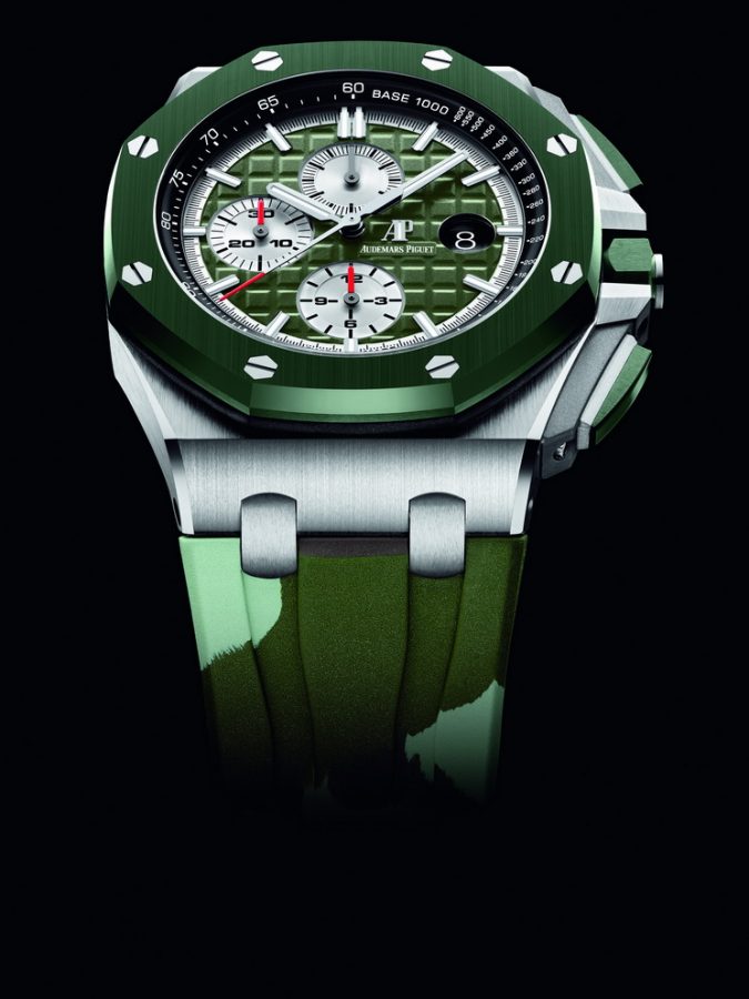 “รอยัล โอ๊ค ออฟชอร์ เซลฟ์ ไวนด์ดิ้ง โครโนกราฟ” ประจำปี 2019 นำเสนอผ่าน 3 โทนสีที่แตกต่าง บนตัวเรือนที่มีให้เลือก 2 วัสดุ เติมเต็มด้วยลูกเล่นของพื้นหน้าปัดสลักลายและสายยางลายพรางทหารเข้าสีกันกับขอบตัวเรือน หรือเลือกเปลี่ยนสายยางเป็นดีไซน์แบบเรียบได้ตามชอบใจ