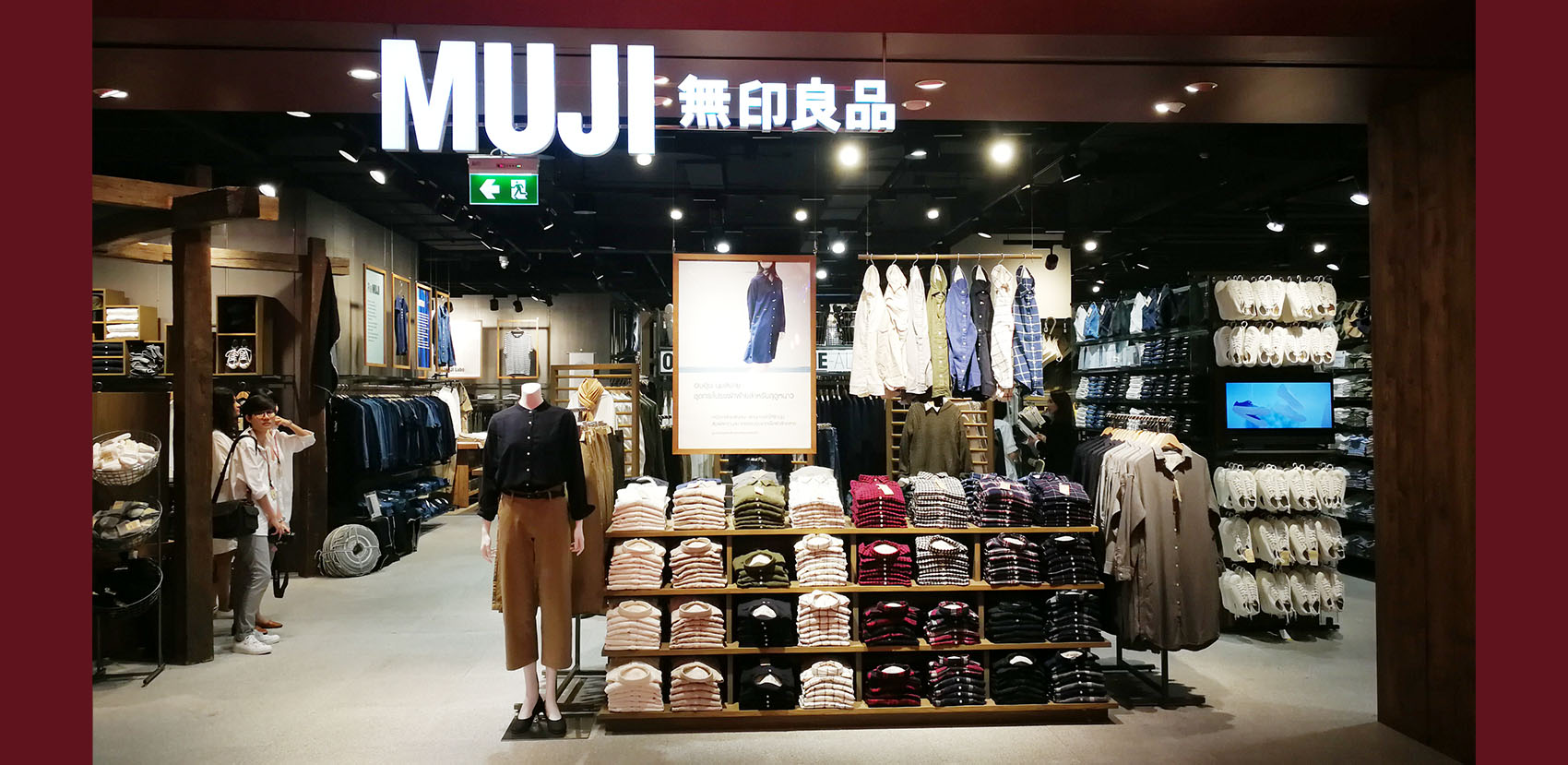 - มูจิ (Muji) ณ ศูนย์การค้าเซ็นทรัลเวิลด์ เป็นร้านที่มีพื้นที่ใหญ่ที่สุดในเมืองไทยและมีสินค้าพิเศษที่สามารถหาได้ที่สาขานี้เท่านั้น ภายใต้คอนเซ็ปต์ “No Brand, Good Quality” มูจิสาขาเซ็นทรัลเวิลด์มีโซนสินค้าพิเศษ อาทิ ฟาวนด์ มูจิ (Found Muji) สินค้าท้องถิ่นจากแต่ละพื้นที่ทั่วโลก; มูจิ เลโบล์ (Muji Labo) เครื่องแต่งกายสำหรับบุรุษและสตรีที่เน้นความสบายและคล่องตัว เหมาะในการใช้ในชีวิตประจำวัน; รี มูจิ (ReMuji) ยึดบนแนวคิดวิถีแฟชั่นที่ยั่งยืน นำเอาคอลเลคชั่นเสื้อผ้าสุดวินเทจของมูจิมาย้อมสีครามปรับโฉมใหม่; ดอยตุง (DOITUNG)ผลิตภัณฑ์ท้องถิ่นคุณภาพดี ช่วยส่งเสริมสนับสนุนสินค้าดอยตุงเพื่อช่วยเหลือเกษตรกรไทย; โต๊ะเครื่องแป้งจำลองที่ให้สุภาพสตรีได้ทดลองผลิตภัณฑ์เครื่องสำอางคุณภาพดี; บริการพิเศษในการออกแบบวางผังเฟอร์นิเจอร์บ้านในรูปแบบ 3D โดยผู้เชี่ยวชาญที่สามารถจำลองห้องให้ได้เหมือนจริง และบริการอื่นๆ อีกมากมาย การตกแต่งของร้านเป็นแนวมินิมอล ทำให้รู้สึกสบาย โล่ง และเป็นกันเอง ในอนาคตร้านมูจิสาขาเซ็นทรัลเวิลด์มีแผนที่จะขยายพื้นที่ในร้านเพื่อเพิ่มพื้นที่จัดแสดงสินค้าให้มากขึ้น